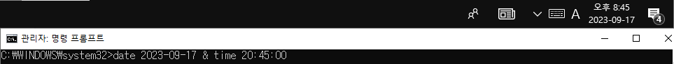 예를 들어, 날짜를 "2023-09-17"로, 시간을 "20:45:00"으로 변경하려면 다음과 같이 입력합니다:
