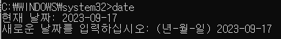 예를 들어, 현재 날짜를 "2023-09-17"로 변경하려면 다음과 같이 입력합니다: