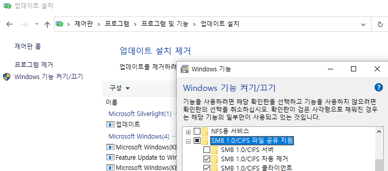 1) 파일 및 프린터 공유: