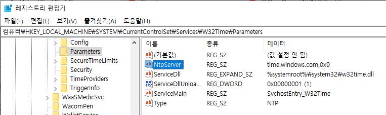 컴퓨터\HKEY_LOCAL_MACHINE\SYSTEM\CurrentControlSet\Services\W32Time\Parameters