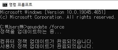 정책 설정을 완료한 후 변경 사항을 적용하려면 시스템을 재부팅하거나 명령 프롬프트에서 gpupdate /force 명령을 실행하여 정책을 강제로 업데이트합니다.