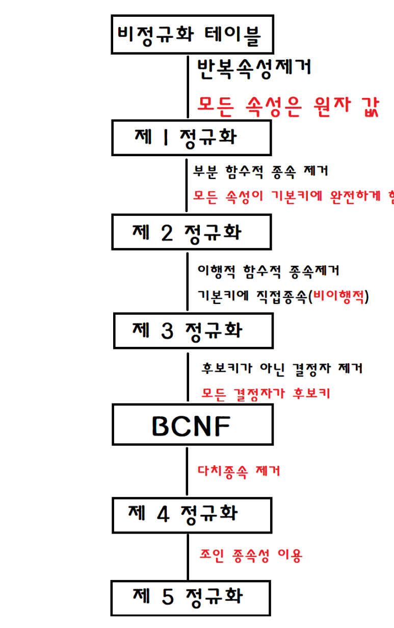 2) 정규형들은 차수가 높아질수록(제1정규형→제5정규형) 만족시켜야 할 제약조건이 증가된다.