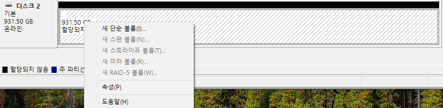 초기화된 디스크에서 새로운 파티션을 생성할 수 있습니다.