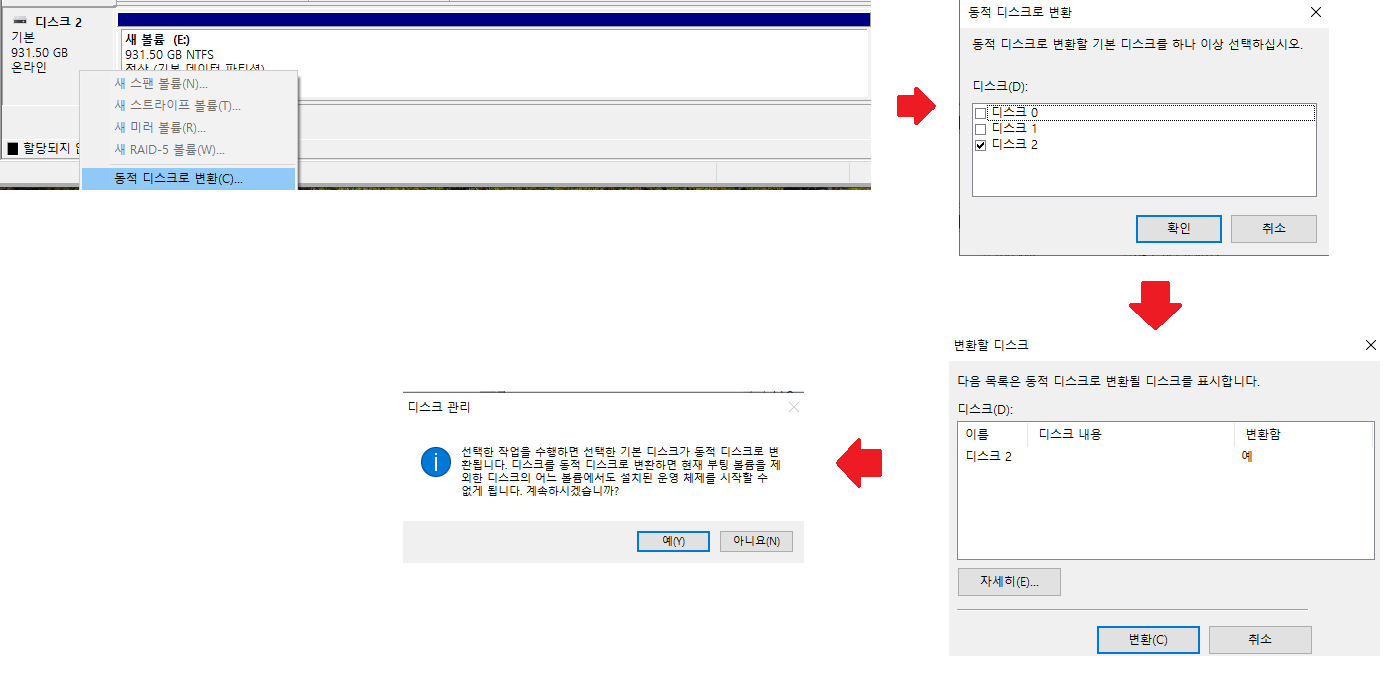 디스크를 동적 또는 기본 디스크로 변환할 수 있습니다.