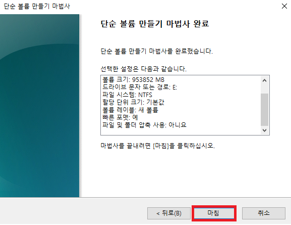 파티션 생성 후, 파일 시스템(NTFS, exFAT 등)으로 포맷할 수 있습니다.