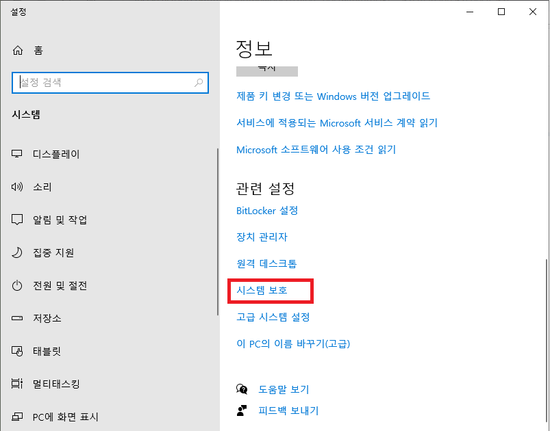 문제 발생 시 이전 시점으로 복구하려면, 시스템 복원 기능을 사용합니다.