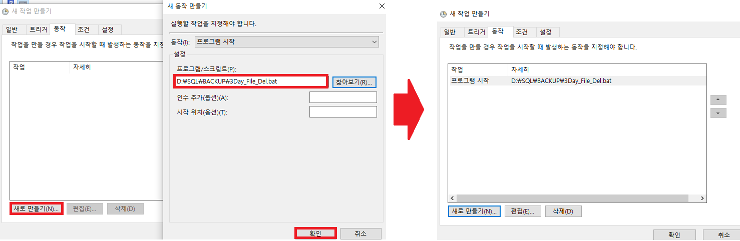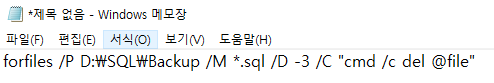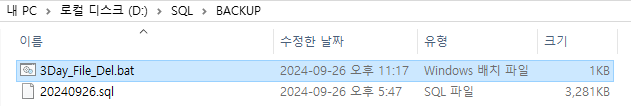 | /P | D:\SQL\Backup | 작업 대상이 있는 파일 위치 D:\SQL\Backup 경로에 있는 모든 파일 |