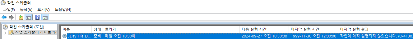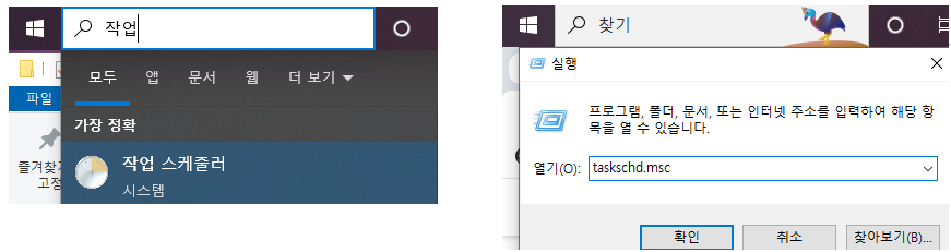 작업 스케쥴러를 검색하거나 실행창에서 taskschd.msc 을 실행합니다.
