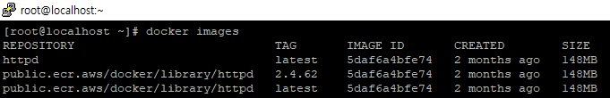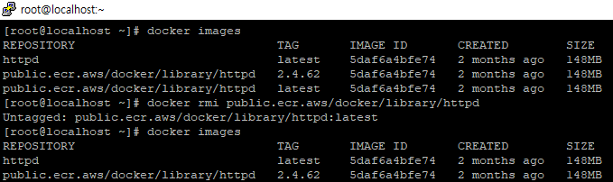 | docker images | 로컬에 저장된 이미지 목록을 확인합니다. | docker images |