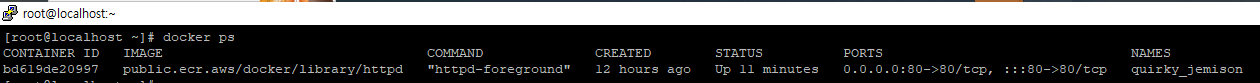 | docker ps | 현재 실행 중인 컨테이너 목록을 확인합니다. | docker ps |