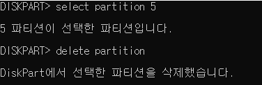 ⅱ. Diskpart 명령어를 통한 파티션 삭제