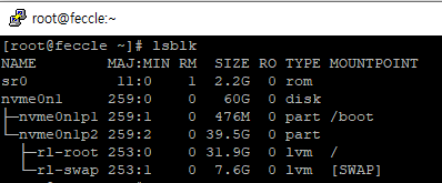 | NAME | MAJ:MIN | RM | SIZE | RO | TYPE | MOUNTPOINT |