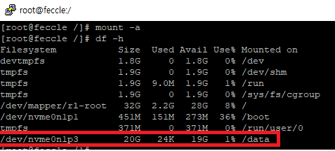 | [root@feccle /]# mount /dev/nvme0n1p3 /data |