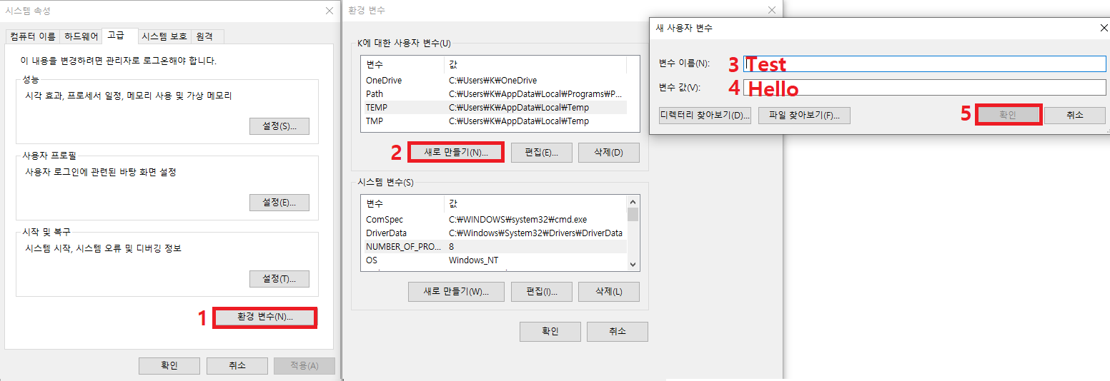 1) "환경 변수" 창을 엽니다.