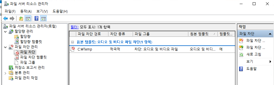 Ⅳ. 파일 서버 리소스 관리자 (FSRM) 정책 설정