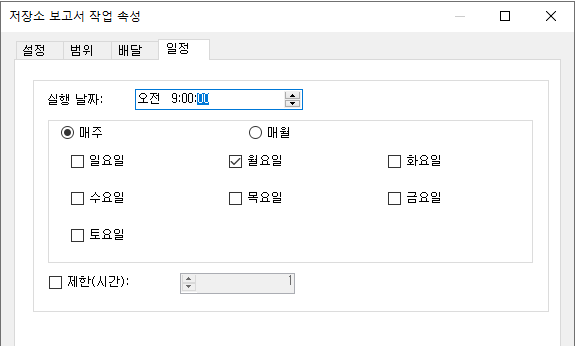 2) 매주 이메일로 해당 보고서를 관리자에게 자동 전송.