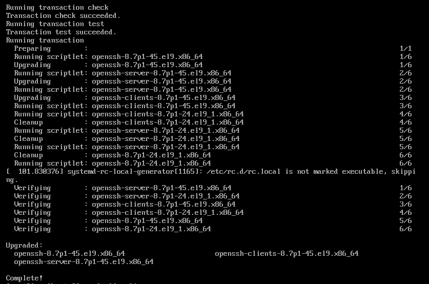 | [root@localhost] # yum update -y openssl openssh-server 또는 [root@localhost] # dnf update -y openssl openssh-server |