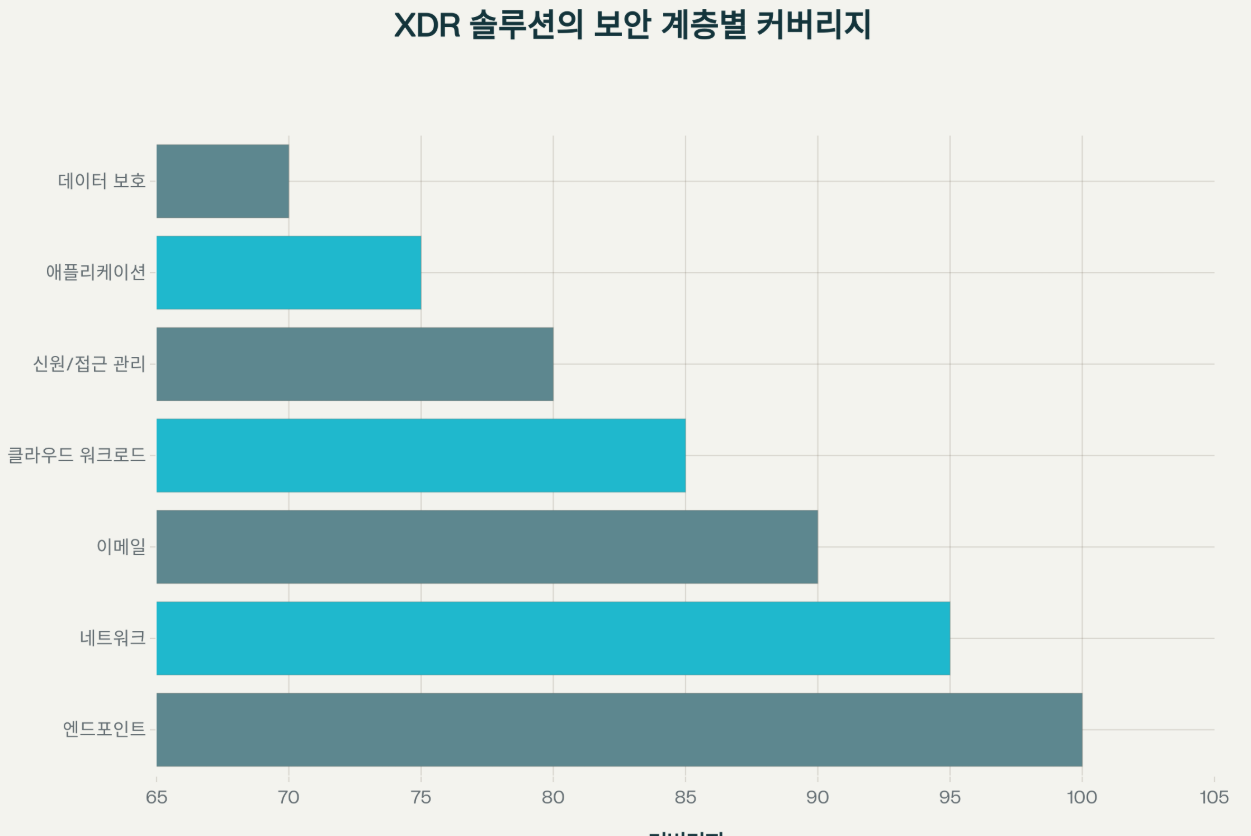 ■ XDR 솔루션이 제공하는 보안 계층별 커버리지를 보여주는 차트
