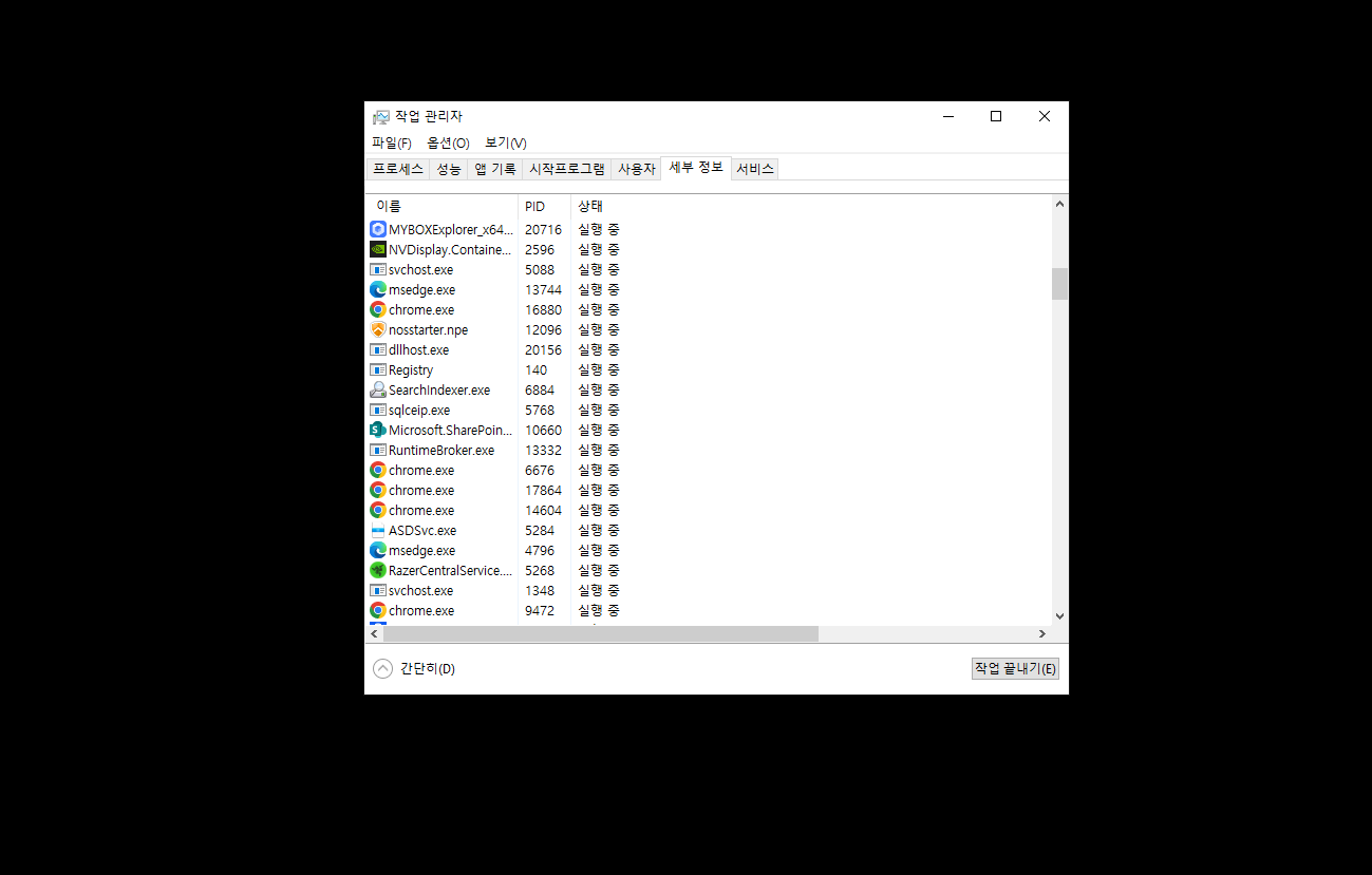 해당 프로세스가 종료되면 위 UI 요소들이 사라지며, 일반적인 작업 수행이 불가능해집니다.