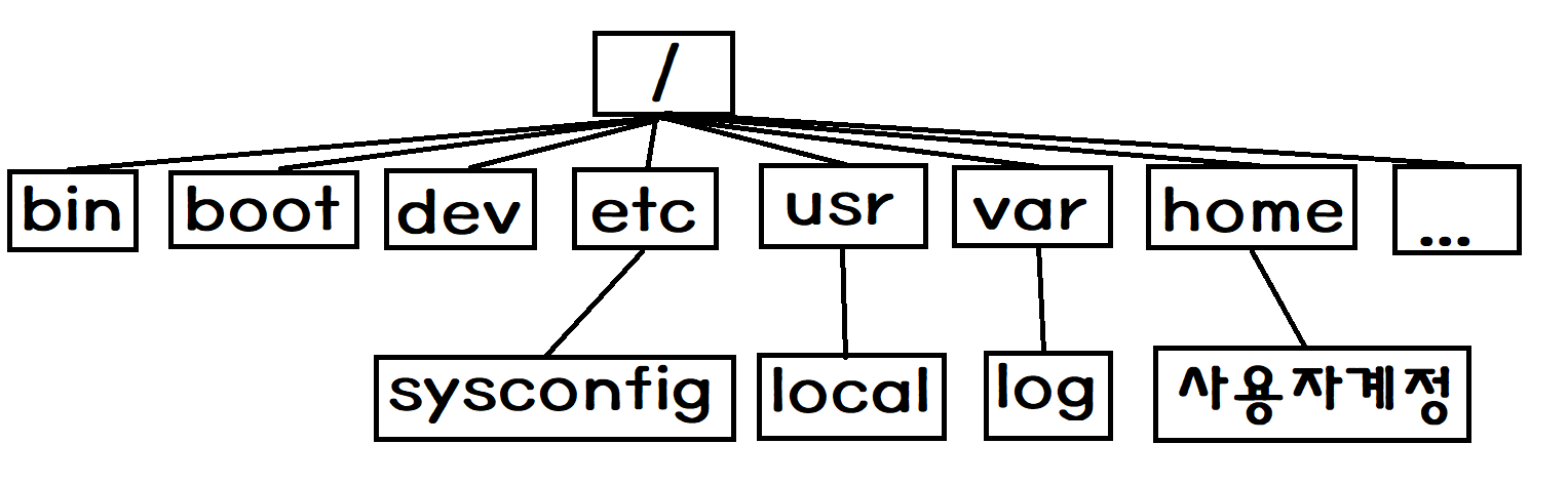 - 리눅스는 트리 구조로 구성되어 있습니다.