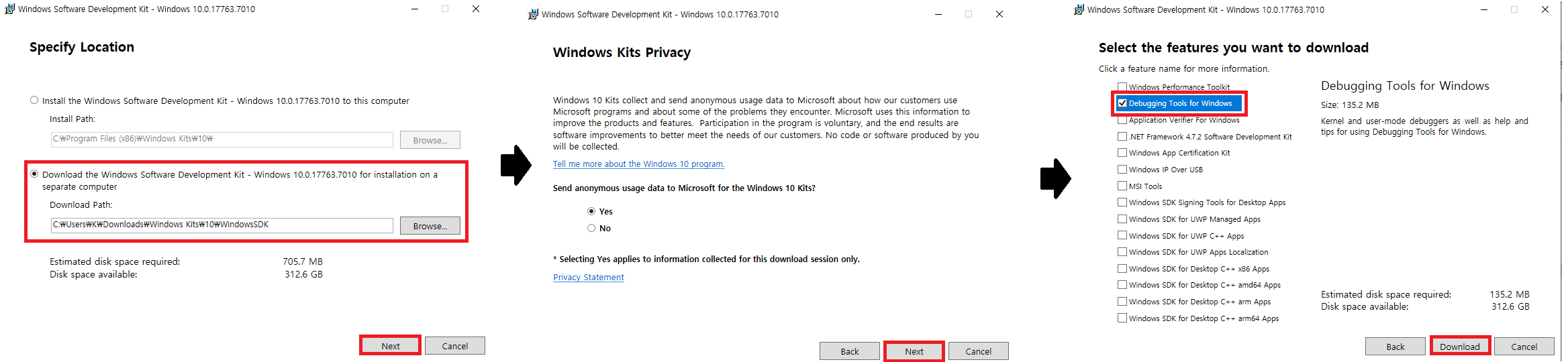 2) 전체 SDK 설치 없이 디버깅 도구만 선택적으로 받을 수 있습니다.