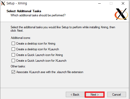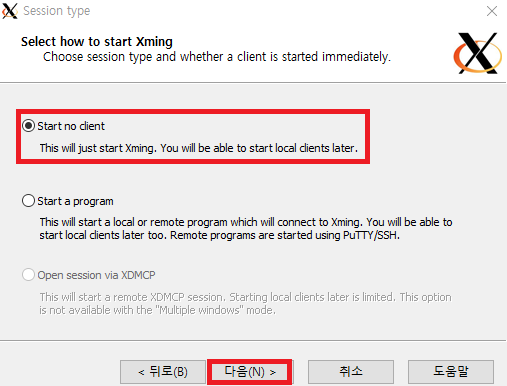 설치된 프로그램 중 "XLaunch" 프로그램 실행