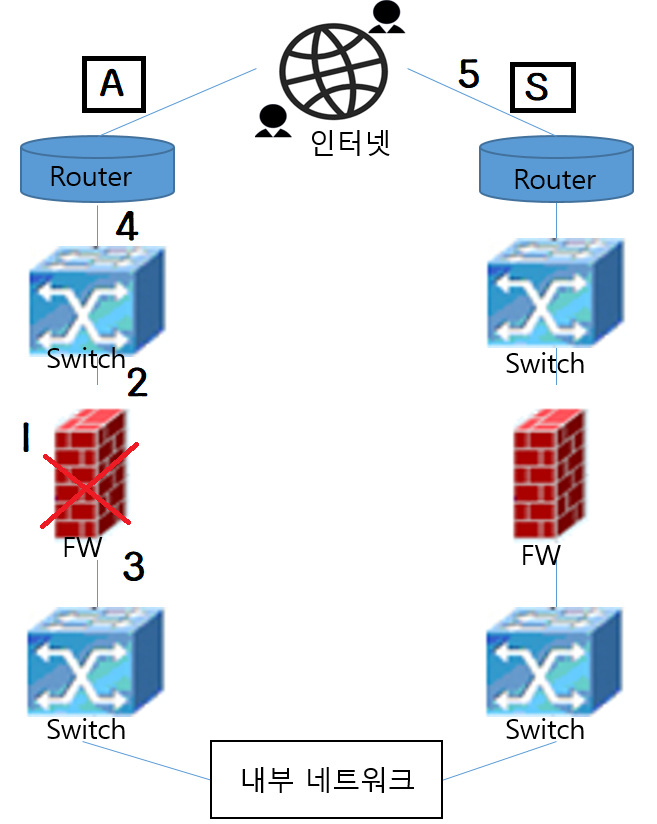 1) Active 라인의 방화벽이 다운 상태로 바뀜