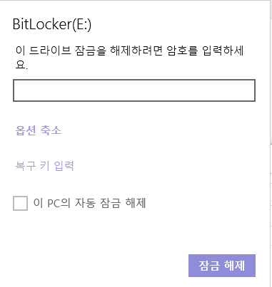 암호화가 완료되면 드라이브에 접근 시 잠금 해제를 해야 하며, 암호화되는 시간은 드라이브 크기에 따라